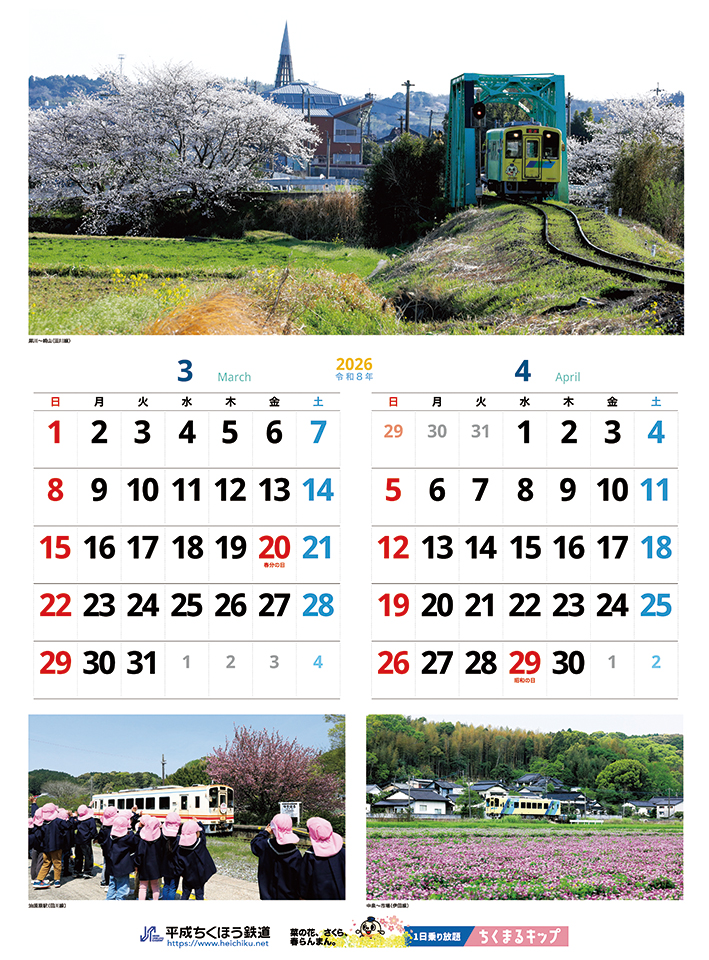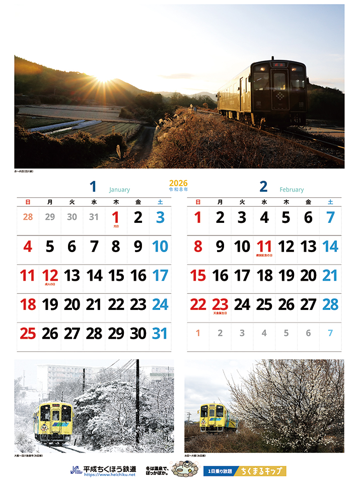 2026年カレンダー 制作・印刷 2025年10月14日 最終更新日時 : 2025年10月15日 link-admin お客様:平成筑豊鉄道様2026年カレンダー制作・印刷業務をご依頼いただきました。